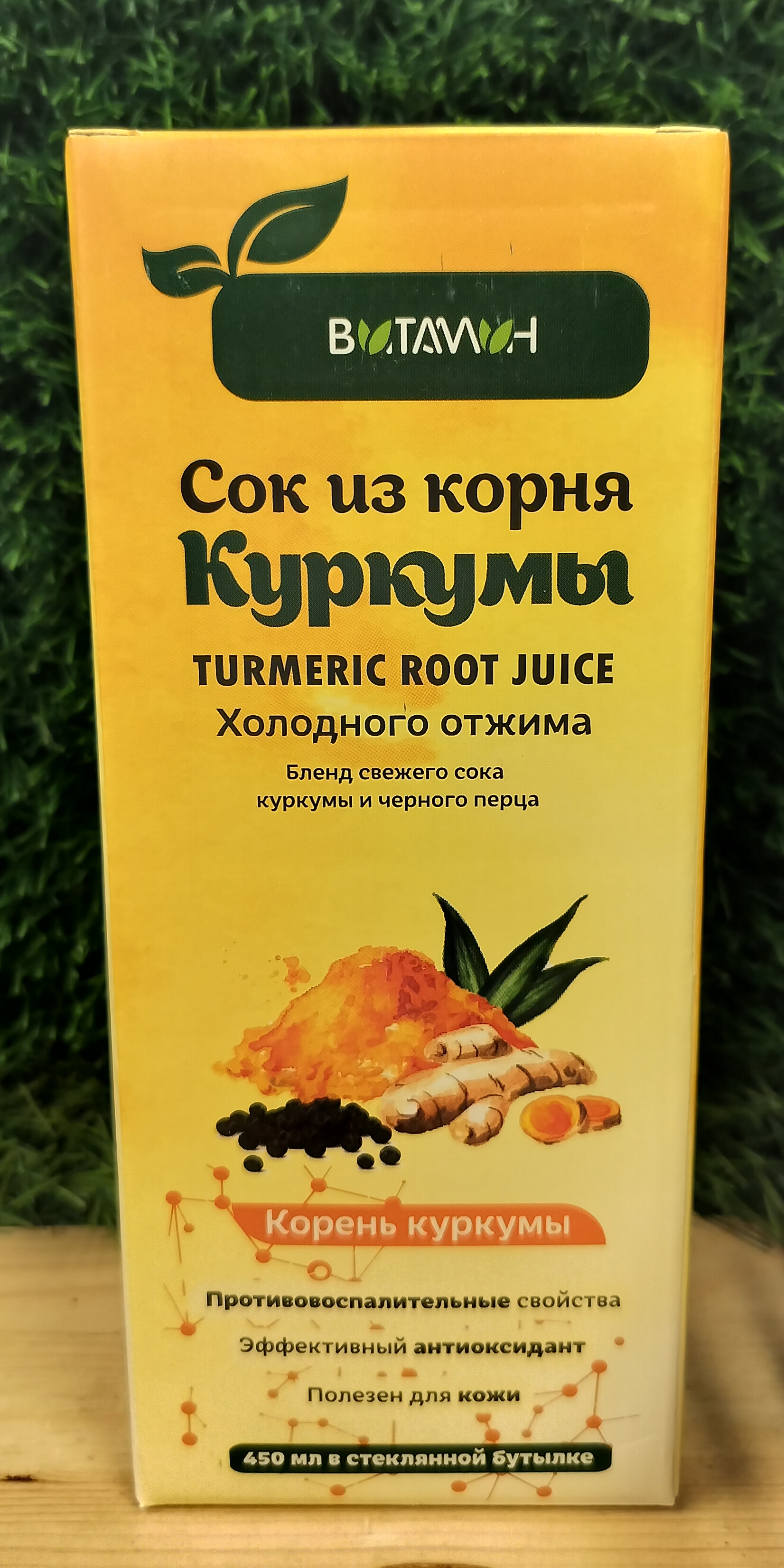 Состав: Каждые 10 мл сока содержат: 9,9г куркумы, 0,1г перец черный.